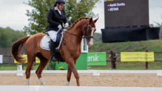 | Zetár 2019. áprilisában született ménesünkben. Kiscsikó korában az alapképzést kapta meg: körmözés lábfelvétel vezetés féreghajtó beadás. Csikókora után, betanítása során ingerküszöb növelő tárgyakkal és helyszínekkel is megszoktattuk. Betanítása során részt vett egy-két órás tereplovaglásokon és a lovardai patanyomfigurák lovaglását is megtanulta, vezető lóként többször vezetett egynapos marhatereléseket is, hosszabb lovastúrákat. A betanítás egyik fizikai végállomásaként az egy hetes túrát szoktuk megjelölni, melyen részt vett és fizikailag is jól teljesítette. Ez a normál túránk esetében napi 20 kilométer 5 napon át. A ló első versenyén Szentesen egy díjlovas versenyen vett részt 2024. áprilisában, ahol fiatal kora ellenére kiválóan a helytállt. (Nem volt ijedős, a szállítást jól viselte, futóra gyorsan felment stb.) Az első ugró versenyén is ebben az évben szerepelt Hódmezővásárhelyen az Állattenyésztési Napokon ahol 5. helyen végzett. Ezt követő időszakban ugró és díjlovas tréningben vett részt. Többek közt Szokola Csaba ( Magyarország egyik legeredményesebb díjlovas versenyzője) trainingjének is résztvevője volt. A ló első lovastusa versenyén való részvételét ugró tréning előzte meg, mely részeként Kecskeméten is részt vett ugró versenyen akkor már Cseppentő Regő lovassal. Ezután 2024. október 18-20.-ig részt vett élete első három napos lovastusa versenyén, Bábolnán. Díjlovaglásban kifejezetten jól teljesített és a többi napot is jó fizikumban teljesítette többek közt a hibátlan terepet. 2025. Június 7.-én Mórahalmon rendezték meg a CDN-B díjlovagló versenyt, melyen Apáti Zsófia és Zetár két versenyszámban is megmérette magát. A3 és A4 kategóriában versenyeztek. A díjlovas bemelegítés egy fedett lovardában zajlott, majd ezt követően a verseny szabadtéren került megrendezésre. Zetár, az A3-as és A4-es programok teljesítése során a lovasa finom segítségeire készségesen reagált. Így mindkét számban 60% feletti teljesítményt sikerült nyújtaniuk. Ez a 6 éves, Stardust apaságú herélt a nap folyamán végig kiegyensúlyozottan viselkedett – mind a szállítás, mind a verseny során. A Szentesen megrendezett CDN-A/B díjlovagló versenyen 2025.06.21.-én lovasaink ismét két versenyszámban indultak. Apáti Zsófia, Zetár nyergében indult a versenyen. A verseny napján a nagy hőség nem gátolta a párosok teljesítményét. Zetár végig figyelt a lovas segítségeire, kiegyensúlyozottan hajtotta végre a feladatokat. Az A3-as programmal indult a verseny, melyet szorosan követett az A5-ös program. A párosnak a két versenyszám között csak 10 perc pihenőre volt ideje, ugyanis az A5-ös program első indulójaként léptek pályára. A feszített tempó nem szabott gátat a teljesítménynek, mindkét pályát 60% felett értékelték a bírák. Az A5-ös program lovaglása olyannyira jól sikerült, hogy ezzel a páros az első minősülő pályáját is maga mögött tudhatja. 2025.07.20.-án ismét Szentesen rendeztek CDN-A/B díjlovagló versenyt rendeztek. A Stardust apaságú Zetár, lovasával, Apáti Zsófiával méretették meg magukat ezen a napon. A lovas két versenyszámban is indult, a nap folyamán a sikeres minősülés is szerepelt a kitűzött céljai között. A verseny napján a nagy hőség nem gátolta a páros teljesítményét. Zetár végig figyelt a lovasaik segítségeire, kiegyensúlyozottan hajtotta végre a feladatokat. A2-es programmal indult a verseny, melyet követett az A3-as program. Az A2-es feladatban többet között egyszerű ugrásváltás is szerepelt, melyet a párosok sikeresen teljesítettek. Zsófinak és Zetárnak az előkelő 3. helyezést sikerült elhozniuk. Ezt követte az A3-as program, melynek lovaglása olyannyira jól sikerült, hogy a bírák 66%-ra értékelték Zsófi és Zetár teljesítményét. Ezzel a lovasa a második minősítő pályáját is megszerezte. |