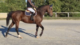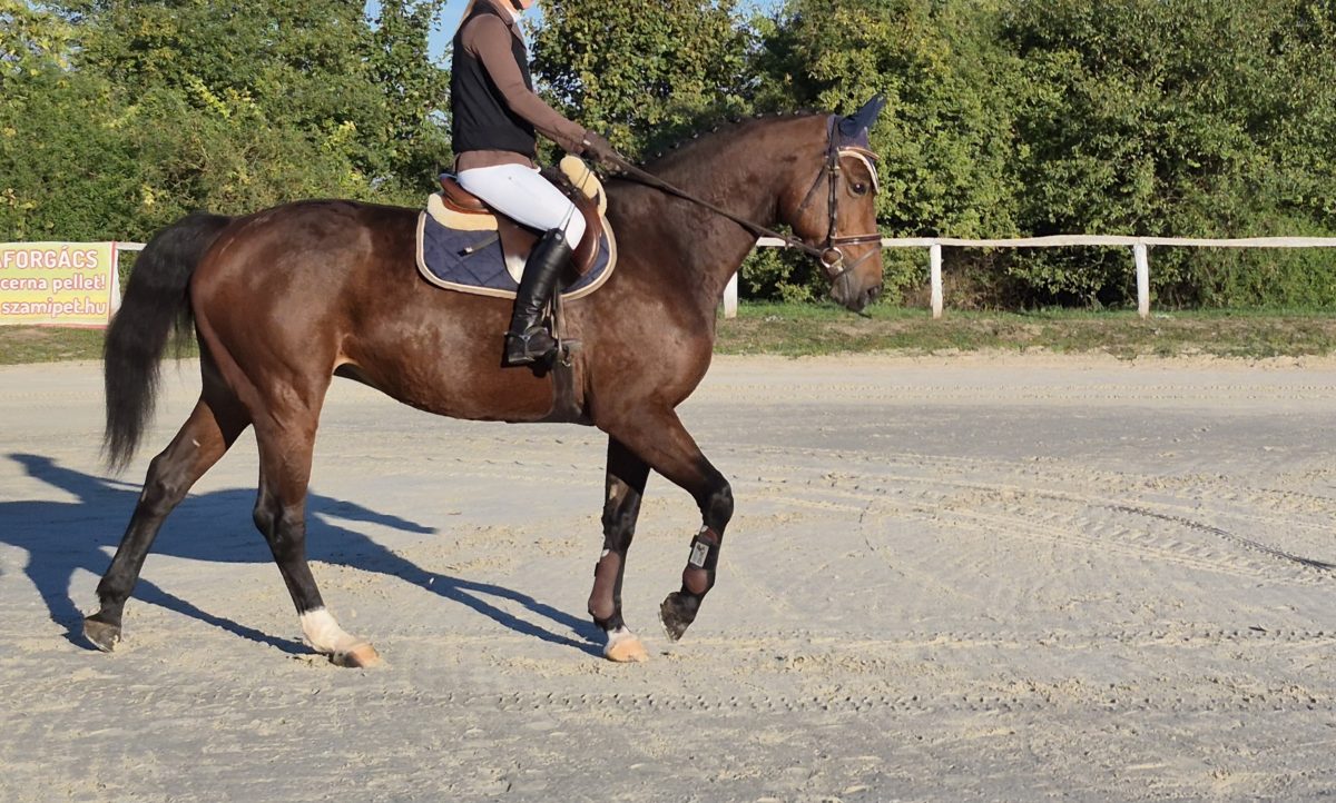 Rendkívül jó fejű, kiegyensúlyozott fiatal kanca. Jelenleg kezdő lovasokkal is dolgozik az ugróedzések mellett, illetve aktívan versenyez. Akár rajtengedély vizsgára is alkalmas, jó egyensúlyú, nagyon segítőkész ló, nyugodt szívvel ajánljuk akár olyan fiatal lovasnak is aki most kezdi meg versenypályafutását. A későbbiek során tenyésztésre is alkalmas, jó mozgású mutatós csikója tenyészetünkben megtekinthető. |