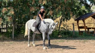 Új otthonát keresi a képeken látható 8 éves gyönyörű küllemű magyar félvér kanca. Egészséges. Papírjai, oltásai, vérvétele rendben vannak. Rendszeresen körmölve van. Belovagolt, nyereg alatt is, nyugodt, kiegyensúlyozott. Futószáron mindkét kézen elengedett, szóra dolgozik. Pici gyerekek alatt is megbízható. Osztályban ügyesebb lovassal, kiválóan dolgozik. Ügyességi feladatokat ismeri, kisebb ugrásokon szívesen és ügyesen ugrik. Mutatós küllemű, 166 cm magas bottal. Szereti és igényli a törődést. Csikója volt már, akit nagy szeretettel nevelt. Tökéletes választás lehet szabadidős versenyekre, hobbi célra, esetleg lovasiskolába. Probléma mentesen szállítható. |