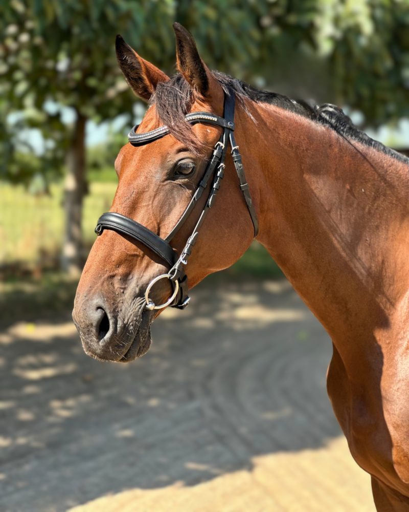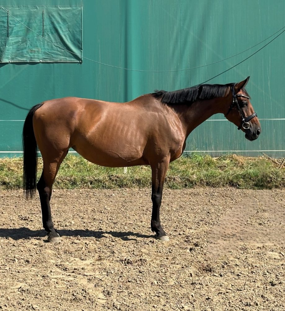 Új, szerető otthonát keresi 9 éves, 175 cm magas magyar sportló kanca. Tündéri személyiség: stabil igerendszerű, embercentrikus, más lovakkal barátságos, földről nyúzható-húzható, lábait adja, pucolás, nyergelés közben konkrétan elalszik. Simán felmegy a lószállítóra és nyugodtan utazik, több nap pihenő után is szóra dolgozik futószáron. Síkon és terepen egyaránt könnyen lovagolható, finoman támaszkodik, szívesen megy előre, nem nehezedik bele az ember kezébe. Igazi kis hercegnő típus. Könnyed, elasztikus mozgása és származása miatt (apja és anyai nagyapja is 150-en versenyzett) tenyésztésre is kiváló választás, de további képzéssel díjlovaglásban, szabadidős versenyeken és díjugratásban is megállja a helyét, azonban hobbira is tökéletes. Származásos útlevéllel, vérvétellel, oltássokkal várja az új gazdiját. Budapesten előre egyeztett időpontban kipróbálható. |
