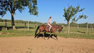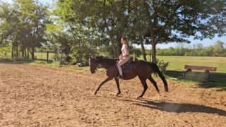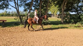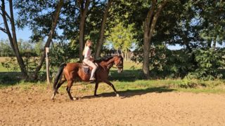 Viki egy kedves es nyugodt angol telivér kanca. Pályán kezdő lovas is lovagolja, de terepen haladó lovast igényel. Könnyen kezelhető, finom lovaglású, a segítségekre érzékenyen reagál, Szája szintén érzékeny, ezért lovasától elvárt, hogy egyensúlyban ülve, ismerve a csizma és testsúlysegítségeket lovagolja, mert erős kéz hatására feszessé válik. Kisebb ugrásokon kipróbált, de ha ilyen szándék van, akkor további képzésre szorul, Rossz mozdulata/szokása nincs, Jelenleg könnyű munkában van (het 2-3x megy), de ennek ellenére előre egyeztetett idópontban bármikor kipróbáható Gödöllő melletti lovardánkban. Videót tudok küldeni. |