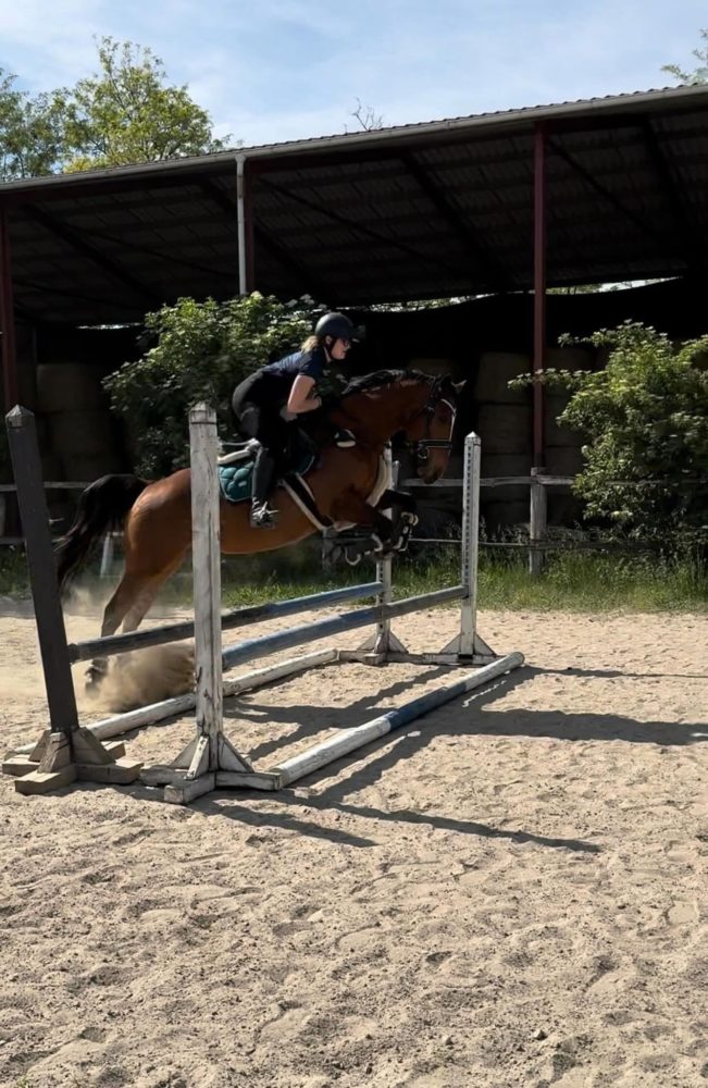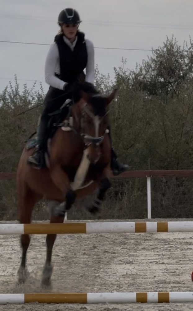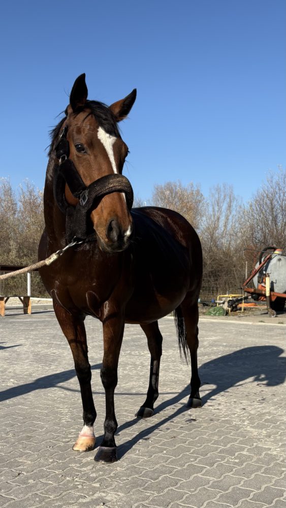 | Fájó szívvel de új szerető családját keresi Sonja. Sajnos nekem nincs rá annyi időm amennyit ő megérdemelne. Sonja egy 13 éves (2012-es) angol telivér kanca . Egészséges. Papírjai, oltásai ,vérvétele rendben vannak. -Magassága: 160 cm. -Első két lábára patkolt. -Belovagolt 3 jármodban szépen dolgozik ,pörgős de nem rohan. -Futószárón szóra dolgozik. -Jó fejű ,minden rosszindulattól mentes. Lovassal 90-100 centin ugrott sajnos nincs elég tapasztalatom hozzá, hogy tovább képezzem ,de másnak jó alap lehet. 70-75centin versenyeztem vele, mint kezdő ugró lovas. Szabadon:120cm ugrott Ajánlom határozottabb kezdőnek,, haladónak. Kiváló társ lehet lovasának. Más lovakkal jól kijön. Karámba és boxban is elvan egyaránt. Szerencsére sántaság és hasonló problémák nem voltak vele a nálam töltött ideje alatt. Csak jó helyre eladó, nem lovasiskolába, kupecek kiméljenek. Iá: 2-2.5m Előre egyeztetett időpontba megtekinthető és kipróbálható Bicskén |