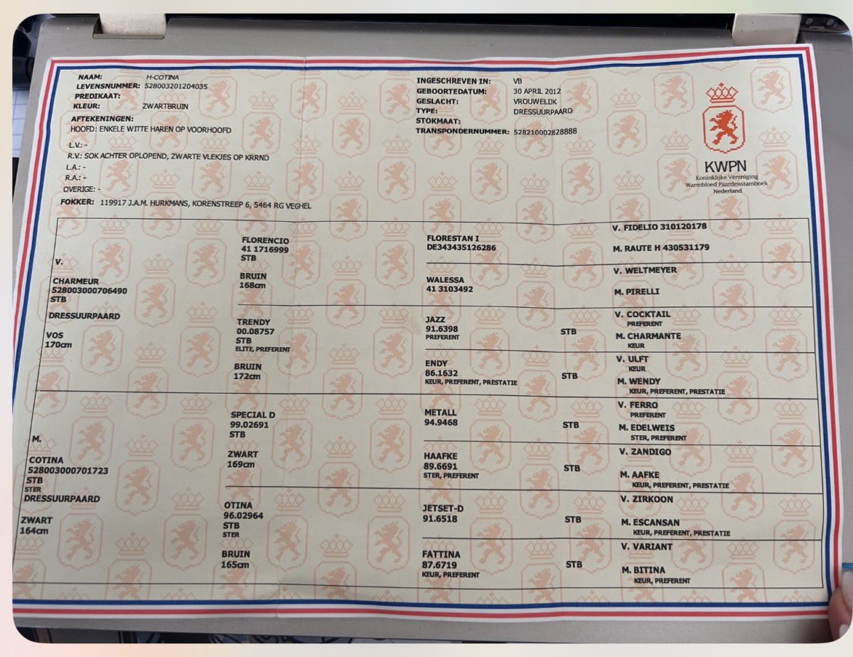 | H-Cotina egy kiváló származású (Charmeur-Florencio-Florestan I.) 13 éves, három kiemelkedő alapjármóddal rendelkező KWPN kanca. 4 éve van a tulajdonomban, amely alatt díjlovas képzést kapott, korábban díjugratásban versenyzett külföldön. 2021-ben Díjlovagló Championátus A kategória 2. Helyezettje és csapatbajnoka. Megvásárlását követően asztmával diagnosztizálták, amely a tartási körülmények kontrollálásával és kiegészítők segítségével szinten tartható. Mérete ellenére kifejezetten bújós, kedves, azonban érzékeny ló, így teljesen kezdők részére nem ajánlom. Jelenleg főként futószáron dolgozik időhiány miatt, de nyereg alatti munkában is megtekinthető Szilvásváradon előzetes időpont egyeztetést követen. További tájékoztatást telefonon tudok adni! A ló irányára 6000€. Videók: https://youtube.com/shorts/Rarkv7hnGqA?si=yabENQum8OpkQgo9 https://youtube.com/shorts/vvTx8vNdHdI?si=nhh8fQQx5t7XOEmN |