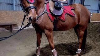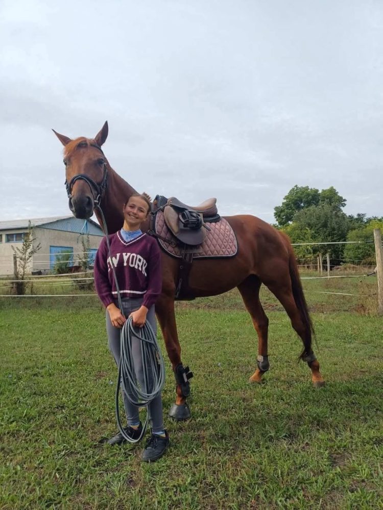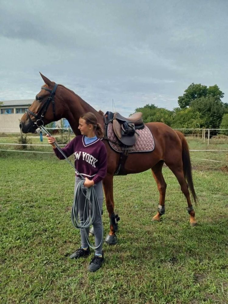 | Új otthonát keresi 7 éves tisztavérű kisbéri félvér kanca! Mutatós, kompakt testfelépítésű ló egészséges, minden szükséges papírral, oltással és vérvétellel rendelkezik. Bottal 156 cm magas, és kedves, bújós, barátságos természetű. Intelligens, gyorsan tanul, így ideális választás egy ügyesebb hobbi lovas számára. Belovagolt,ügyesen ugrik. Részt vett szabadidős versenyeken, és gond nélkül utazik. Röntgen felvételek is rendelkezésre állnak. Szabadidős versenyekre, hobbi célra, tenyésztésre remek választás. |