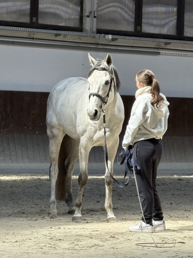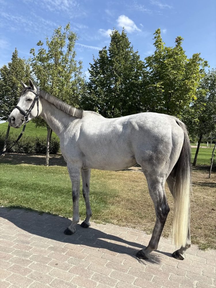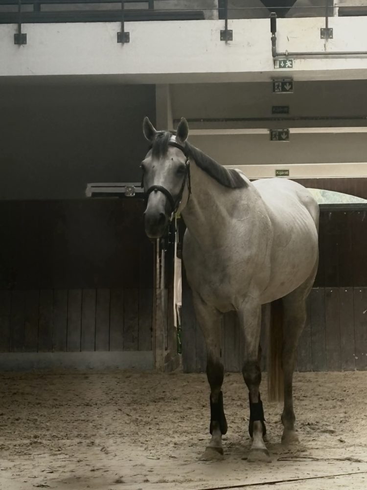 | Új otthonát keresi a képeken látható 8 éves francia tenyésztésű herélt. Papírjai, oltásai, vérvétele rendben vannak. Gyönyörű küllemű, különleges megjelenésű, intelligens ló. Bottal 170 cm magas. Nyereg alatt készséges, könnyen kezelhető. Mindhárom jármódban szépen dolgozik. Más lovakkal jól kijön, nem domináns. Gond nélkül utazik. Lábai nem tökéletesek, könnyebb munkára, hobbi célra alkalmas. |