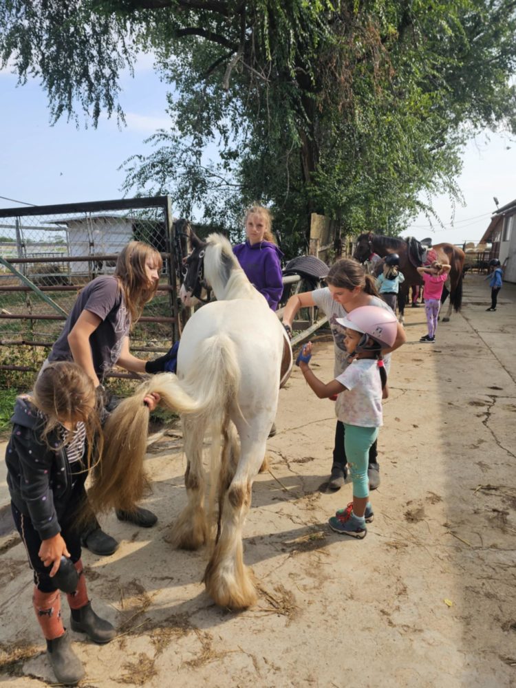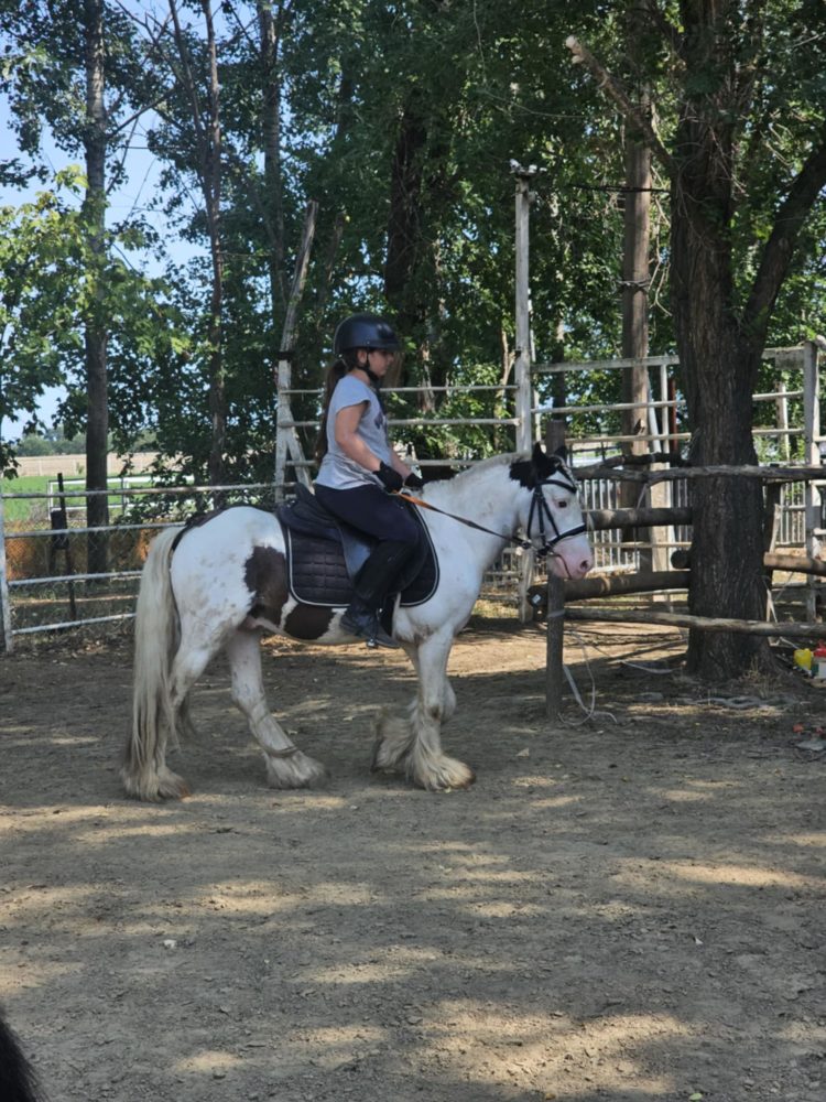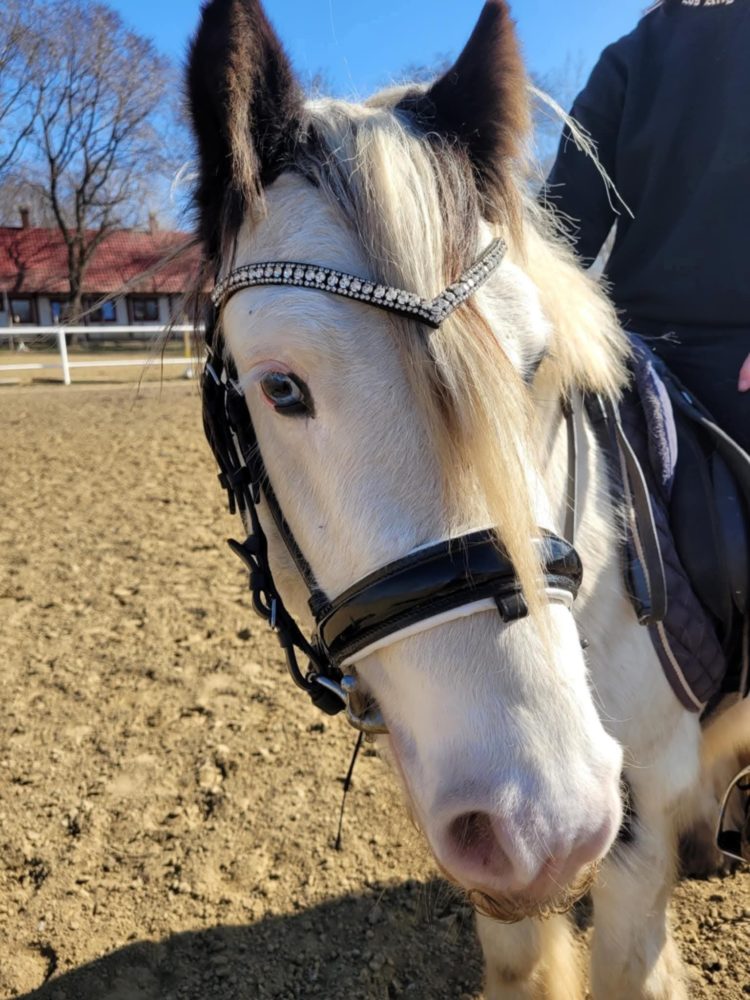 | Új otthonát keresi a képeken látható 5 éves különleges megjelenésű tinker herélt. Egészséges. Papírjai, oltásai, vérvétele rendben vannak. Mutatós küllemű, barátságos természetű, intelligens lovacska. 140 cm magas,bottal. Belovagolt, illetve kocsizik is. Nyereg alatt is együttműködő, kiegyensúlyozott. Rendszeresen gyerekek lovagolják, teljesen megbízható. Terepen és pályán egyaránt remekül dolgozik. Kisebb ugrásokon ügyesen és szívesen ugrik. Más lovakkal jól kijön, nem domináns típus. Tökéletes választás lehet hobbi célra, szabadidős versenyekre. |