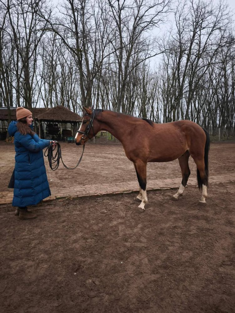 | Új otthonát keresi a képeken látható kiváló származású három éves magyar sportló herélt. Egészséges, papírjai, oltásai, vérvétele rendben vannak. Különösen szép küllemű, nagy méretű (jelenleg kb. 165 cm), kiváló idegrendszerrel rendelkező, ígéretes fiatal ló. Több hektáron elterülő, erdős-legelős területen, kis létszámú ménesben nevelkedik. Napi szinten találkozik emberekkel, kedves, barátságos, bújós és érdeklődő természetű. Képzése elkezdődött, köthető, vezethető. Futószáron dolgozik. Apja Iceberg, fiatal magyar sportló fedezőmén, akinek felmenői között megtalálható Icelli, Stauffenberg és Toborzó is. Anyja Kalimeris D’Ariel apaságú, nagy méretű, kiváló adottságokkal rendelkező kanca, aki eredményesen versenyzett díjugratásban és lovastusában, igazi „főnyeremény” amatőr ló volt. A csikót sportcélokra ajánlom: elasztikus, jó mozgású, korát meghazudtolóan kiegyensúlyozott és biztos lábakon áll. Lovastusára (military) különösen ígéretes. |