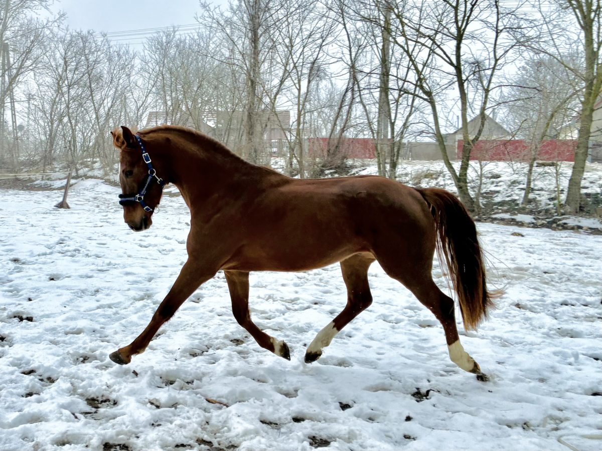 | Magyar sportló mén keresi új tulajdonosát, sporttársát, akivel elkezdheti versenykarrierjét. 2022 Májusában született, idén 4 éves mén. képzése folyamatos. Saját tenyésztésű ló, csikó kora óta mindennapos foglalkozás veszi körül. Okos, intelligens, könnyen kezelhető mén, nagyon könnyen tanul és szereti, igényli is a foglalkozást. Futószáron szóra dolgozik, lovassal nyereg alatt 3 jármódban stabilan közlekedik. Kisebb akadályokat lovassal szívesen ugrik. Lovaglás szempontjából nagyon kényelmes jarmódokkal rendelkezik, készséges, 100%-ig figyel a lovasára. Nyugodtan közlekedik másik ló mellett is, nem ijedős, nem Szemes, így kezdő versenyző vagy ifi gyermek Lovasok számára is jó szívvel ajánlom. Szabadonugróban 150 cm-ig próbálva, amit nagyon könnyedén ugrott. Jelentkezését a magyar sportló ménvizsga előszelekcióra leadtuk, oda akár màr az új tulajdonossal is érkezhet. Származásos útlevele, friss vérvétele, oltásai rendben. Felmenői között anyai oldalon megtalálható Churchill IC, Casall, Cavalier Apai oldalon pedig Aranykapu Concilio, Cornet Obolensky Magassága bottal 163 cm, de még növésben van. Nem lesz nagy ló, de egy kompakt, jók izmolt testfelépítésű mén. Bármikor megtekinthető előzetes telefonos beszélgetés után. Helyileg Debrecen mellett. Jelenleg Sándor Ferenc lovagolja és készíti fel a tavaszi szezonra, nála is lehet érdeklődni. Kupeceknek és tovább értékesítésre nem eladó, társát keresi, akivel együtt megmutathatja mi rejlik benne |