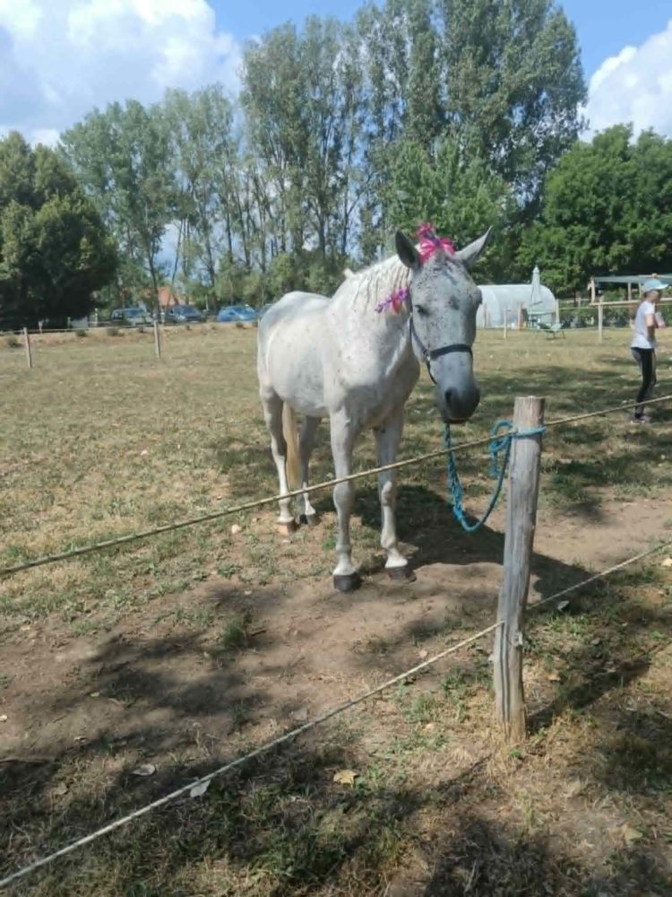 | Lovasoktatás befejezése miatt eladó szeretett lovunk Vitéz. Ő egy lipicai jellegű 11 éves herélt. Kocsiban 1-es 2-esben is nagyon szépen megy. Terepen elől és hátul is jól közlekedik. Pályán gyerekek is lovagolták. Lovastáborokban is részt vett, szereti ha foglalkoznak vele. Megtekinthető, kipróbálható Veszprém megyében, Kisapátiban. Időpontegyeztetés illetve további információ a megadott telefonszámon. Útlevéllel (0-ás), oltással és vérvétellel rendelkezik. |