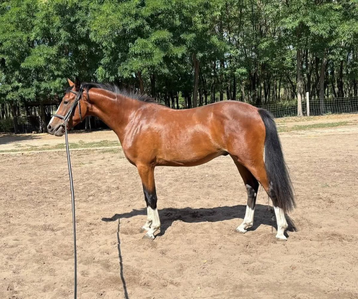 Új otthonát keresi a képeken látható kiváló származású három éves magyar sportló herélt. Egészséges, papírjai, oltásai, vérvétele rendben vannak. Különösen szép küllemű, nagy méretű (jelenleg kb. 165 cm), kiváló idegrendszerrel rendelkező, ígéretes fiatal ló. Több hektáron elterülő, erdős-legelős területen, kis létszámú ménesben nevelkedik. Napi szinten találkozik emberekkel, kedves, barátságos, bújós és érdeklődő természetű. Képzése elkezdődött, köthető, vezethető. Futószáron dolgozik. Apja Iceberg, fiatal magyar sportló fedezőmén, akinek felmenői között megtalálható Icelli, Stauffenberg és Toborzó is. Anyja Kalimeris D’Ariel apaságú, nagy méretű, kiváló adottságokkal rendelkező kanca, aki eredményesen versenyzett díjugratásban és lovastusában, igazi „főnyeremény” amatőr ló volt. A csikót sportcélokra ajánlom: elasztikus, jó mozgású, korát meghazudtolóan kiegyensúlyozott és biztos lábakon áll. Lovastusára (military) különösen ígéretes. |