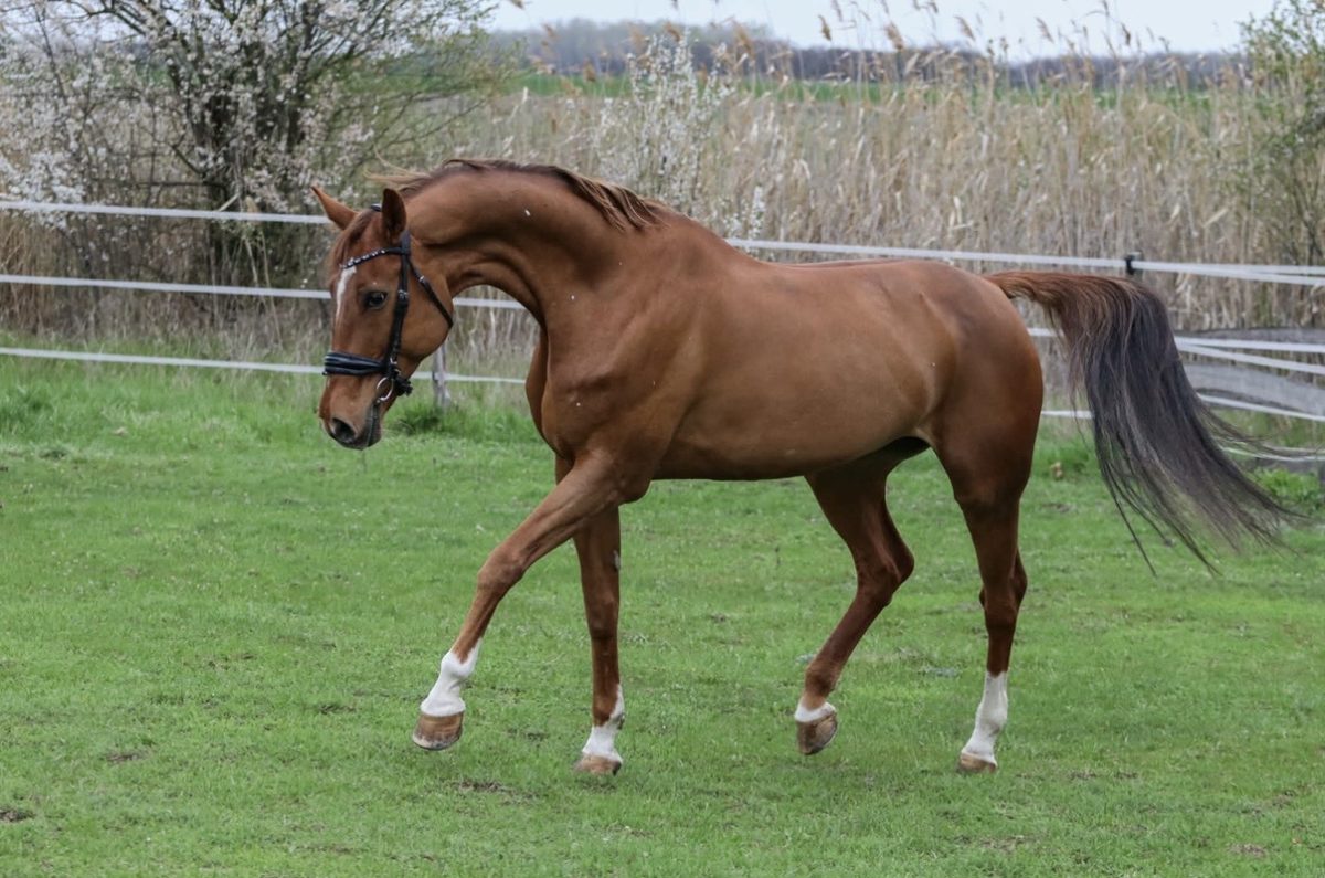 | 2011-ben született, kiváló származású kanca. Villámgyors, rendkívül fordulékony és pontos, igazi versenyló mentalitással. Jól kezelhető. Profi lovassal korábban 140 cm-ig versenyzett, az elmúlt években amatőr és ifjúsági lovasokkal eredményesen szerepelt 125 cm-ig. Ideális választás ambiciózus ifi vagy amatőr lovas számára, aki szeretne sokat nyerni és eredményeket elérni. |