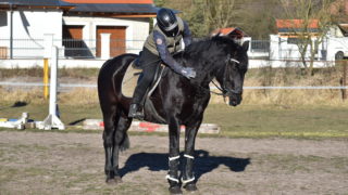 | Eladó Pluto, 13 éves kanca. Eddig fogathajtásban versenyzett, Vénusz (hirdetésben ő is megtalálható) párja volt. Be/átlovaglása folyamatban. Pluto tömegesebb alkatú, inkább hajtósabb típusú ló. Határozott, tapasztalt lovast igényel. Kemény fejű, de következetes kezekben könnyen, finoman is kezelhető. Csizmát egyre jobban veszi, előrehajtó csizmára jól reagál, oldalléptető csizmát tanulja. Vágta, valamint rúd- és cavaletti munkát jelenleg tanulja. Készséges, jó hajlandóságot mutat a rudakon való átkeléshez. Határozatlanság esetén hajlamos dominánsabb viselkedésre, ezért kezdőknek nem ajánlott. Egyedüllétet és bezártságot nehezen viseli, de munkában egyedül is figyel lovasára, gond nélkül dolgozik. Valamint karámban egyedül is elvan (jelenleg így van tartva), istállós tartásban igényli, hogy legyen mellette másik ló. Továbbképzése után kiváló univerzális hobbiló lehet belőle, nálam egyszer gyerekek is próbálták nyereg alatt lépés-ügetésben, türelemmel viselte. |