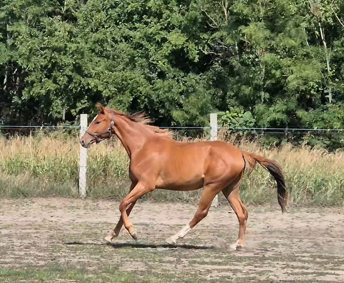 | Új otthonát keresi három éves magyar sportló herélt. Egészséges. Papírjai, oltásai, vérvétele rendben vannak, rendszeresen körmölve van. Jó körülmények között, legelőn nevelkedik. Kedves természetű, intelligens, érdeklődő ló. Kompakt testfelépítésű, jelenleg 155 cm magas bottal, várható magassága 160 cm körül lesz. Tökéletes választás lehet sport és hobbi célra egyaránt. |