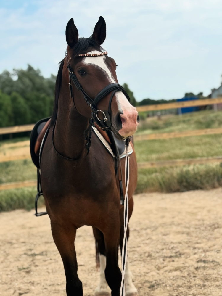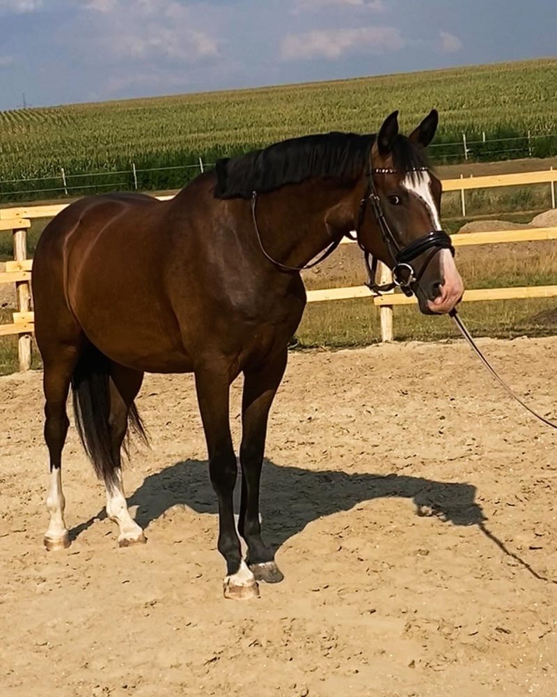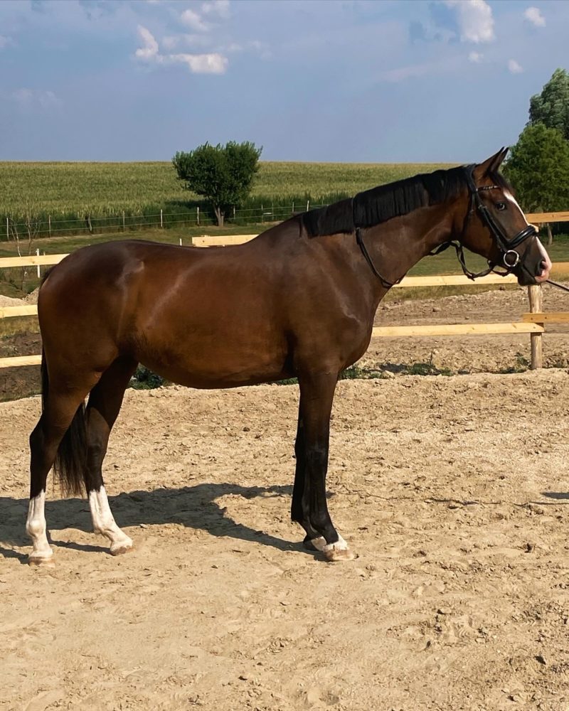 | Eladóvá vált szeretett kancám, idén tölti az 5. életévét. Jó fej, nyugodt természetű, könnyű lovaglású ló. Jártunk vele terepre, megbízható, nem problémás. Inkább hajtós típus, mindhárom jármódban szépen és biztosan megy. Ugrani már ugrottunk vele kisebb ugrásokat gond nélkül teljesít. Oltásai és vérvétele rendben vannak. Csak jó helyre eladó, nem mindenáron. |