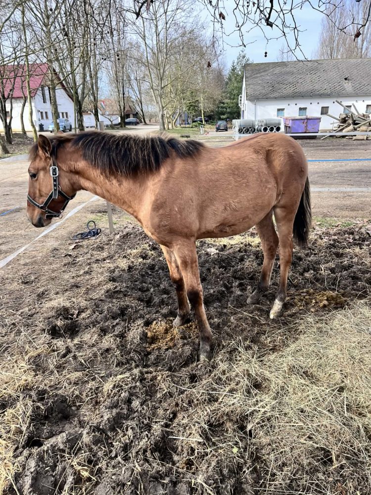 | Új otthonát keresi a képeken látható 2025 áprilisi születésű lusitano apaságú magyar félvér kanca. Papírjai, oltásai, vérvétele rendben vannak. Származása ismert. Különleges küllemű, masszív testfelépítésű. Intelligens, érdeklődő, barátságos csikó. Apja egy tisztavérű lusitano mén, anyja egy fjord félvér kanca. Jó körülmények között nevelkedik,rendszeresen körmölve van. Köthető, vezethető, pucolható. |