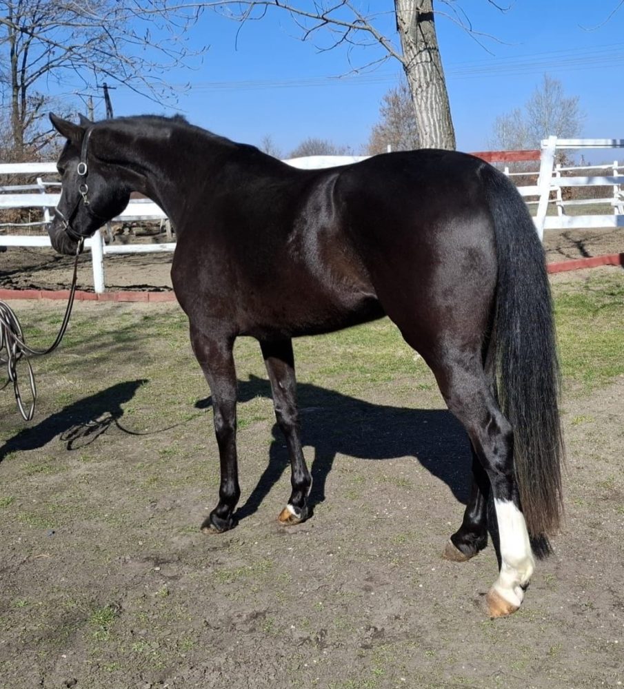 | Eladó egy igazán különleges kanca! Eladó egy ritkaságnak számító, bogárfekete színű kanca, látványos, laza mozgással és kiváló ugróképességgel. A kanca feltűnő megjelenésű, hókás jegyekkel, nagy méretekkel és elegáns kisugárzással rendelkezik. Kiemelkedő származású: a zengersági ménesskörhöz tartozik. Apai ágon a Stakkato vérvonalból származik, anyai oldalán pedig Forpleasure és Narcoss II. vonalak találhatók, ami különösen értékes genetikai hátteret biztosít. Rendkívül jó természetű, kiegyensúlyozott, (készséges), könnyen kezelhető kanca. Kiképzése már elkezdődött, és ígéretesen halad. teljesen egészséges állatorvossal vizsgálható röntgen készíthető a vevő költségére Bármikor megtekinthető. Igény esetén videókat is tudok küldeni WhatsAppon. |