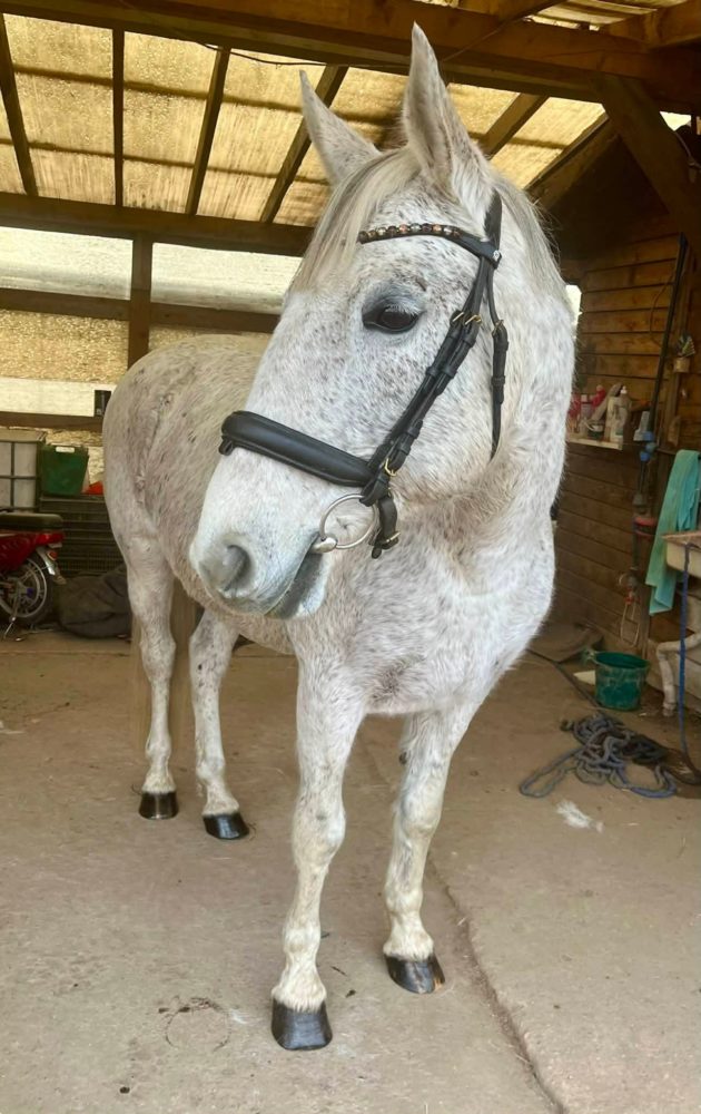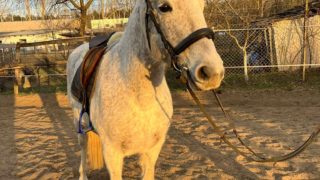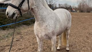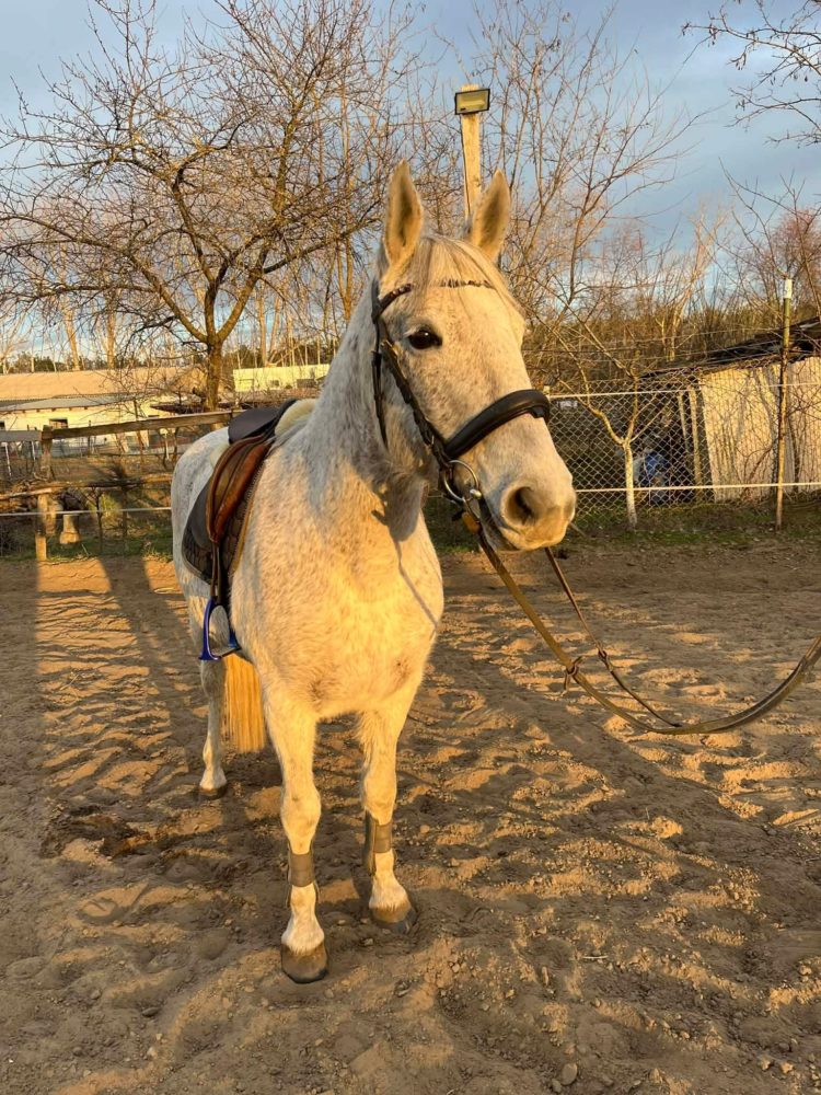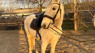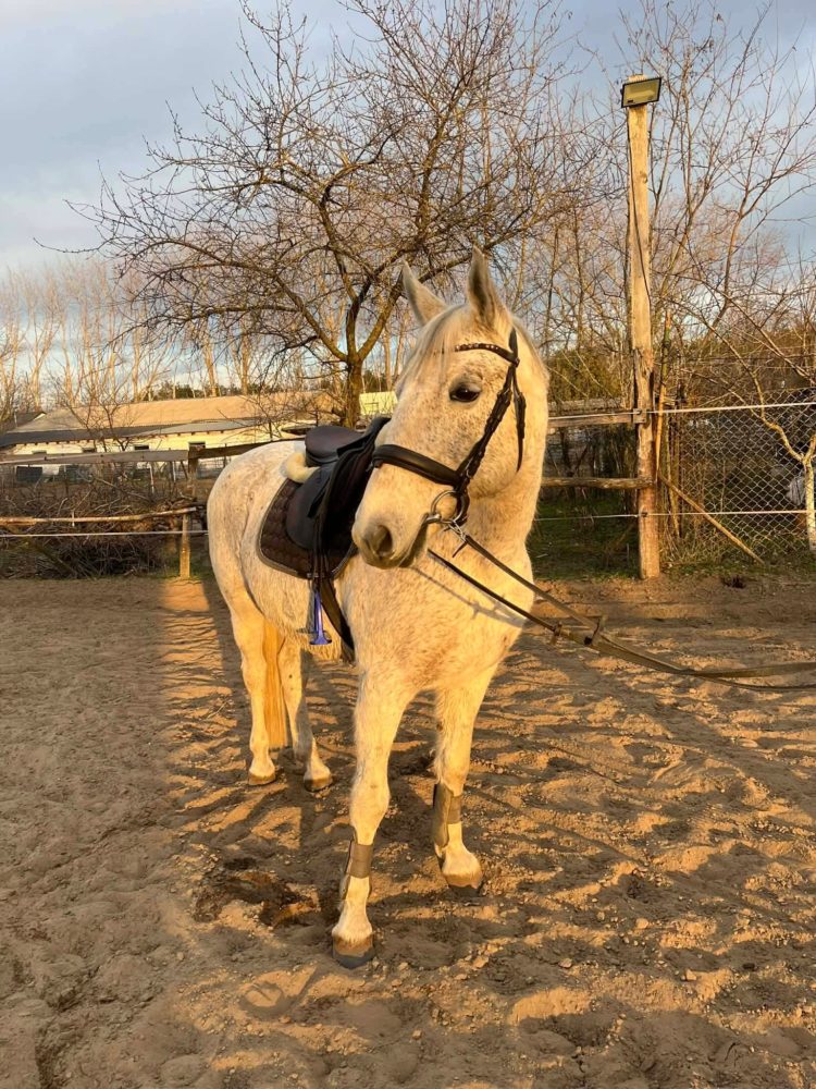 | Új otthonát keresi a képeken látható 12 éves magyar félvér kanca. Papírjai, oltásai, vérvétele rendben vannak. Ismeretlen származású, masszív testfelépítésű. Erősebb testalkatú lovasoknak is ideális társ lehet. Mutatós küllemű, 160 cm magas. Hobbi szinten lovagolt, jó munkakészségű, puha szájú, könnyen kezelhető kanca. Ügyességi feladatokat ismeri, pici ugrásokat szívesen ugrik. Futószáron szóra dolgozik. Más lovakkal jól kijön, nem domináns típus. Tökéletes választás lehet ügyesebb hobbi lovasok számára. |