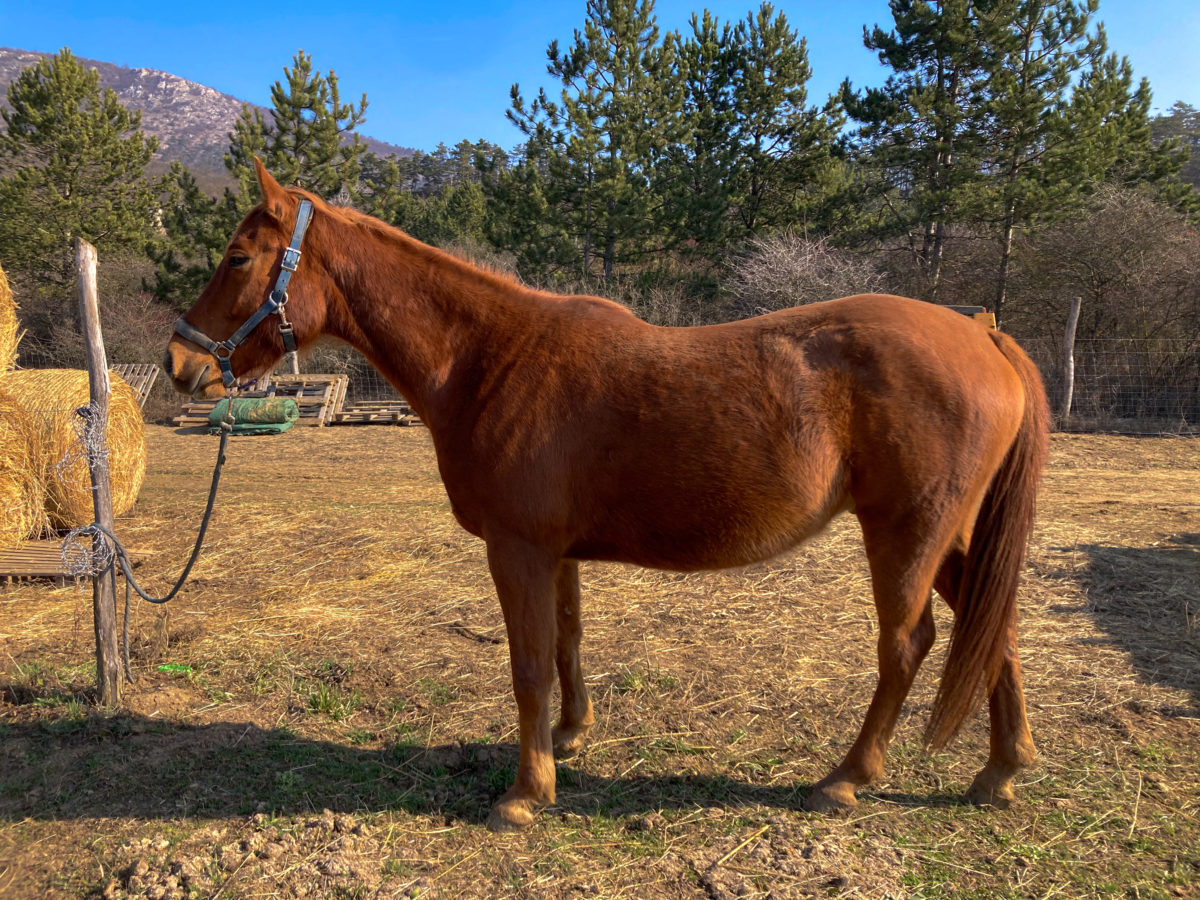 | Új, szerető gazdáját keresi Speedy, 4 éves (áprilisban tölti az 5-öt) kisbéri félvér jellegű sárga herélt, kb. 160 cm. Jó idegrendszerű, kedves természetű, ígéretes fiatal ló hobbi vagy sport célra. Apja Cenzor Zéta, military sportágban kiemelkedő kisbéri félvér fedezőmén. Útlevele nullás, apja, anyja szerepel benne feltüntetve. Gyorsaságát, és ugróképességét apjától örökölte. Kedves, nyugodt, bújós, érdeklődő, szelíd természetű, jó idegrendszerű. Rossz szokástól mentes, nem harap, nem rúg. Jó mozgású, dinamikus. 3 jármódban alapszinten belovagolt, folyamatos képzésre van még szüksége, azonban nagyon ígéretes fiatal ló. Szabadon 130 cm-t ugrott, lovas alatt korából adódóan az ugró munkát még nem kezdtük el vele. Pár hónapja nincs rendszeres munkában lovas alatt pályán. Ez idő alatt terepre jártam vele, és sokat dolgoztunk földről. Futószáron szóra dolgozik, szabadidomítás alapjait ismeri. Ki lehet küldeni körre, be lehet hívni, irányváltást ismeri. Nyomásengedésre, hajlításokra nagyon szépen reagál. Hátraléptetéssel, váll, far elmozdításával sincs probléma. Csizmára jól reagál, szépen el is lép, nem hajtós, nem lusta, gyorsan tanul. Eleje körüli fordulatot ismeri, combra való engedést is gyakoroltuk már edzővel. Korából, és képzettségéből adódóan viszont haladó, tapasztaltabb, határozottabb lovasnak ajánlanám. Terepen szépen megy egyedül és több lóval is. Nem szemes, nem ijedős, nem hagy ott, nem rohan el, nyugodtan tud közlekedni. Terepbiztos, forgalom mellett is haladtunk már, szeret menni, van benne gyorsaság. Földről is gond nélkül lehet vele terepen sétálni, úgy sem rohan el. Gyerekek és állatok között is nyugodtan viselkedik, kutya sem zavarja. Szállítást probléma nélkül viseli. Patái lassan nőnek, kb. 2 havonta van körmölve, jelenleg mezítlábas, előző helyén sem volt patkolva, nem igényelte. Jelenleg ridegtartásban él egy másik kancával. Nyáron pedig ménesben, ahol a rangsorban inkább alul helyezkedik el, így nem dominás, más lovakkal jól kijön. Előző helyén nappal karámban, este pedig boxban volt. Télen nem igényel takarózást, nem volt nyírva. Jelenleg ad-libitum széna mellett tápot kap, illetve biotint, de ez is elhagyható. Teljesen egészséges, nem volt sánta, oltásai, féreghajtása, vérvétele, papírjai rendben vannak. Fogai 2025 nyarán lettek megnézetve és reszelve is. 2025 őszén volt nála masszőr, aki mindent rendben talált. Igény esetén összes felszerelésével eladó. Wintec 2000 nyerget használok rá zöld marvassal. Ezt nyergessel is megnézettem, elég jól passzol rá. Helyileg Pest megyében, 3.kerülettől nem messze, előre egyeztetett időpontban megtekinthető, kipróbálható. Ideális igényes hobbi lovasnak vagy ugró sportágban. Kupecek és társai ne keressenek! |
