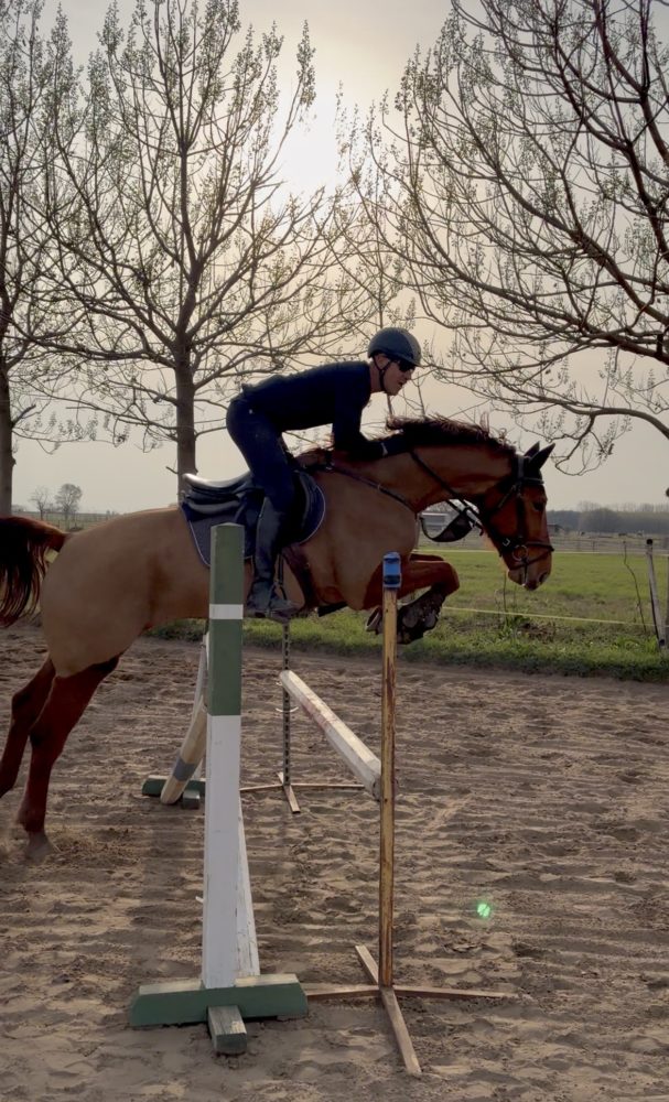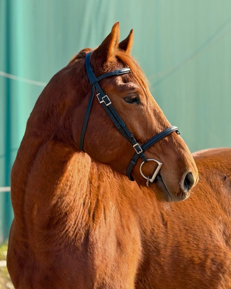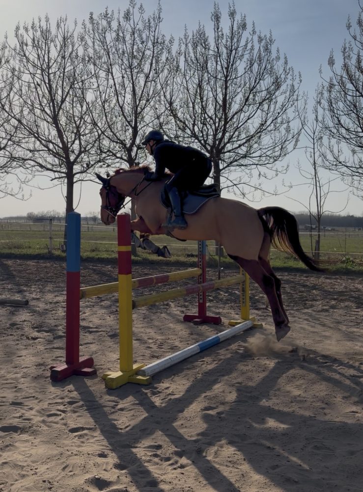 | 5 éves kisbéri félvér herélt keresi új otthonát. Könnyen kezelhető, embercentrikus. Finoman támaszkodik, rúd fölött vágtában készségszinten kezet vált, ugrómunkában bátor, a kért tempóban csinálja a feladatokat, segítőkész. Szabadon kivételes ugró tehetséget mutat, lovas alatt is szépen emeli magát, illetve könnyed, tiszta alapjármódok jellemzik. Rendszeresen járunk vele terepen, kint is jól lovagolható. Apja 110en, anyai nagyapja 130on versenyzett. Földről is egy igazi tündér, köthető, vezethető, lábait adja, futószáron szóra dolgozik. Ajánlom első lónak, szabadidős versenyekre, díjugratásra és díjlovaglásra egyaránt, így militaryban is biztosan helyt állna. Budapesten előre egyeztetett időpontban kipróbálható. |
