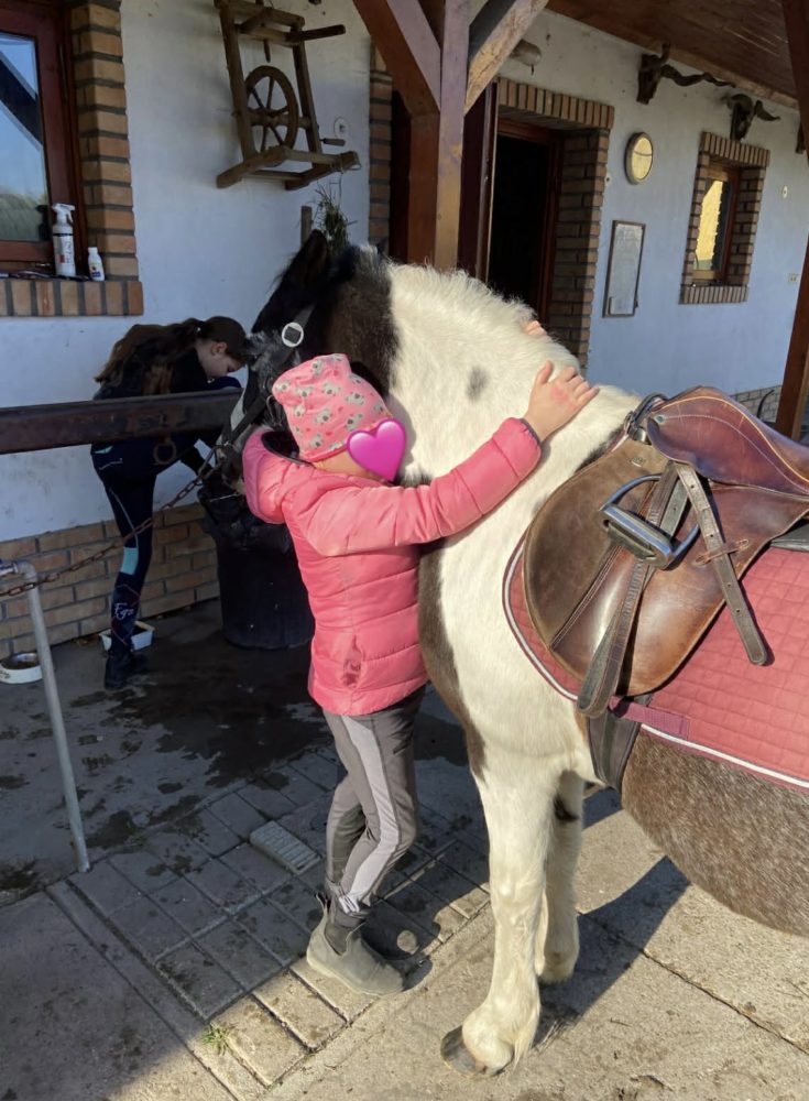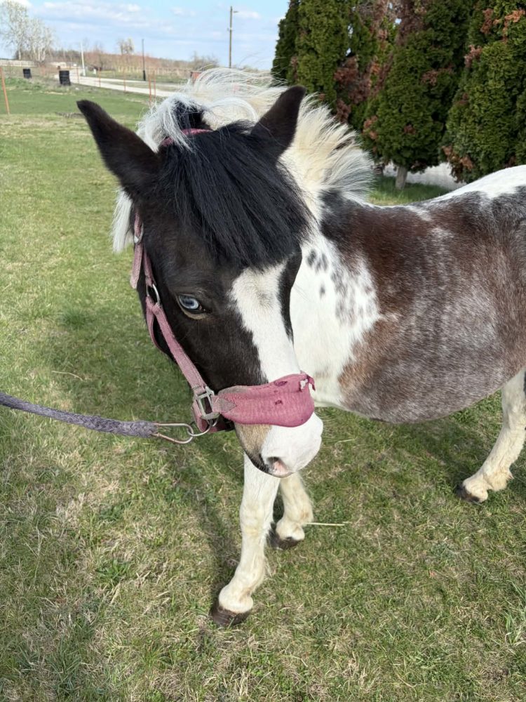 | Eladó Foltos, bottal 133 cm magasságú tarka kanca pónim. Lovasoktatásban vett részt az utóbbi 4 évben, a gyerekekkel nagyon kedves, türelmes, húzható, vonható póni. A legkisebb óvodásokat is nyugodt szívvel futószáraztam rajta. Nappal karámban, este boxban van tartva, de a félridegben is tartható. Ismeretlen származású. Körmölve van, oltások, vérvétel, féreghajtás természetesen rendben. Lovasiskola befejezése miatt eladó. Nálunk mindenki kedvenc pónija volt, ezért a legjobb helyet keresem neki. Helyileg Bács-Kiskun megye, Akasztón található. Előzetes egyeztetés után megtekinthető, próbálható. Érd: +36203447887 Veres-Nagy Laura |