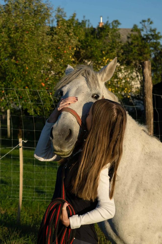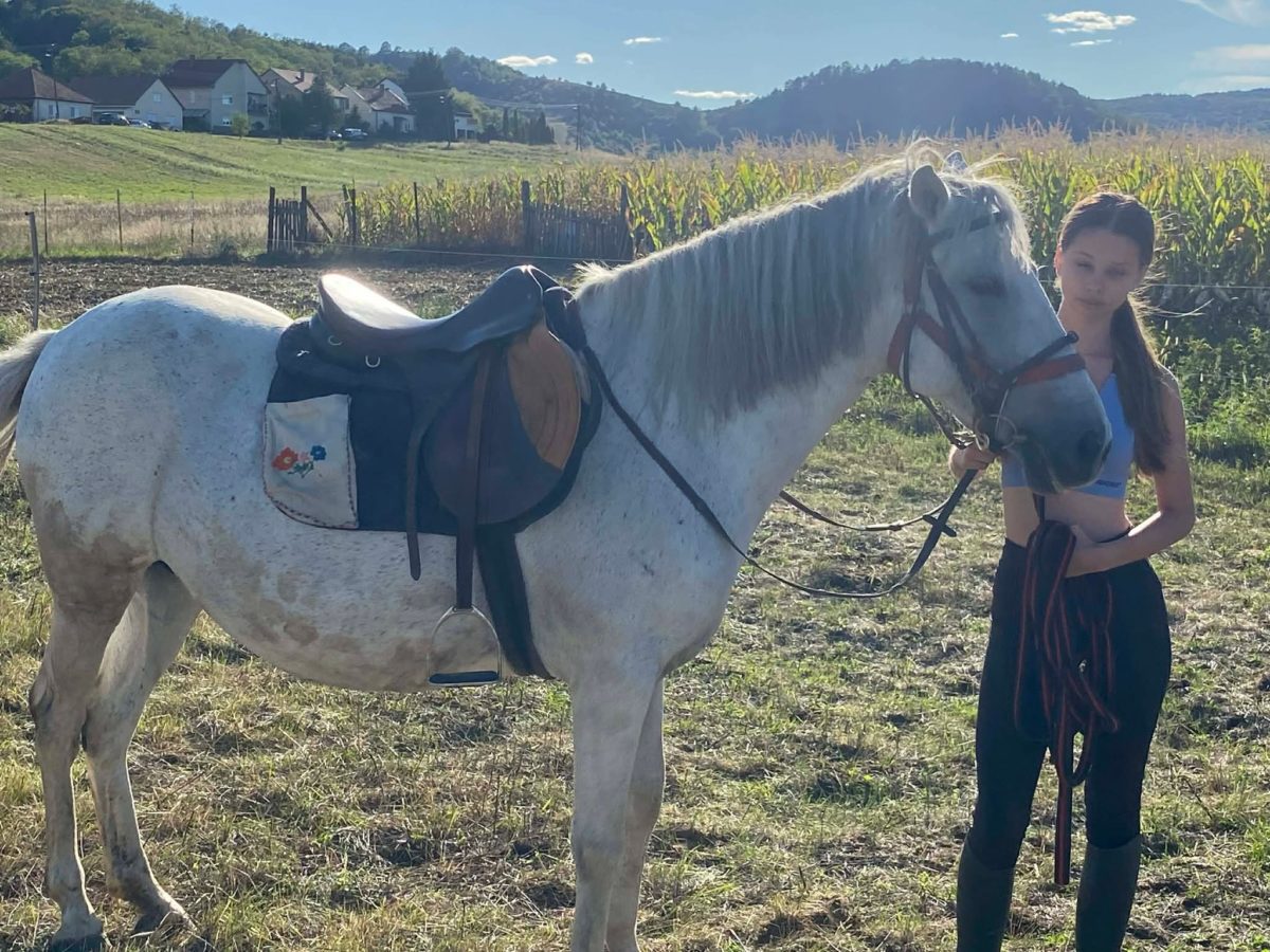| Új otthonát keresi a képeken látható 9 éves lipicai - arab félvér kanca. Papírjai, oltásai, vérvétele rendben vannak. Szép küllemű, arányos testfelépítésű,154 cm magas bottal. Kedves természetű, intelligens, szereti, ha foglalkoznak vele. Nyereg alatt is együttműködő, könnyen kezelhető.Futószáron is szépen dolgozik. Tökéletes választás lehet hobbi célra, szabadidős versenyekre. |