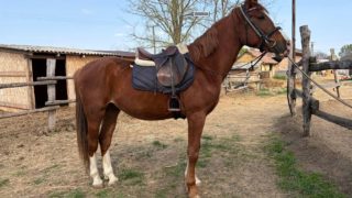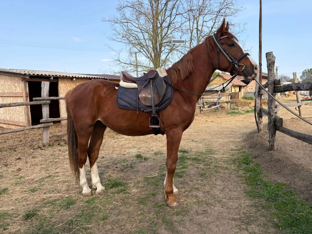 | ❗ Új ár 2 m ft❗ Új otthonát a képeken látható 4 éves remek származású magyar sportló herélt . Papírjai, oltásai, vérvétele rendben vannak. Mutatós küllemű, kompakt testfelépítésű ló. Jelenleg 164 cm magas bottal, növésben van. Bomba biztos, kiváló idegrendszerrel rendelkezik. Nyugodt, együttműködő természetű. Szépen körmölhető, köthető, vezethető. Futószáron mindkét kézen szépen dolgozik. Belovagolt, az alap idomító feladatokat ismeri. Ugró munkáját elkezdte. Kiváló stílusban és szívesen ugrik. Későbbiekben versenyzésre tökéletes választás, de nyugodtsága miatt iskolalónak, hobbilónak is kiváló lehet . Közvetlenül a tenyésztőjétől eladó. |