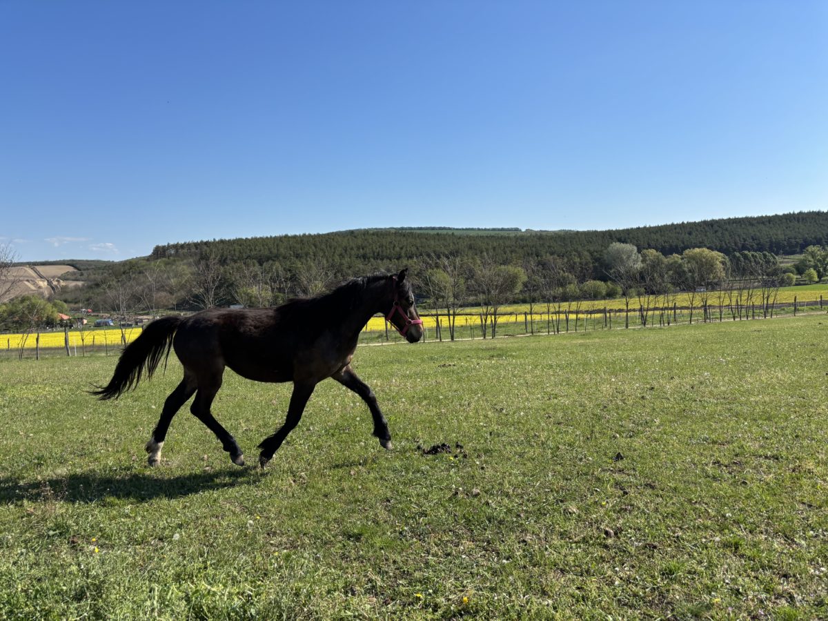 | Idén május 16-án 2 éves. Vezethető, köthető, lábait adja, pucolható, tehát mindent tud amit egy ennyi idős csikónak tudnia kell. 8 hetente körmölve. Oltva van tetanuszra, influenzára, nyugat-nílusi lázra és herpeszre is. Évente FKV és takonykórra is szűrve. Természetesen rendelkezik érvényes lóútlevéllel. Leválasztásig rendszeresen vittem terepre az anyjával. Kutyákkal, macskákkal és kecskékkel is szocializálva van. Ménesben ridegtartásban él. Nincs a rangsor legalján, de nem is túl domináns. Jelenleg kb 135 cm magas. Ifiknek, illetve könnyű súlyú, alacsony lovasok figyelmébe ajánlom. Anyja Surprise ismeretlen származású (amúgy Kisbéri(3366 Széplak XVI Szenátor) x arab (1308 Farag II-1) x póni). Temperamentumos, de segítőkész, kézséges lovasaival. Rendszeresen vett részt szabadidős és házi versenyeken, 1 m-ig biztosan megy pályát. (2. Képen ő látható). Helyszínen megtekinthető ő is. Apja I&H Percy Jackson, (3.képen látható). Príma apaságú sportpóni. Vácdukán előre egyeztetett időpontban megtekinthető. Az eladás oka, hogy a baba mellett nincs időm foglalkozni vele. Nem minden áron eladó, nem sürgős az eladás, szeretném jó helyen tudni. |