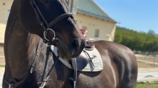 | Tina egy nagyon kedves egyszerű lovaglású kanca, kiváló ugróképességgel, versenyre felkészítve. Itthon már nagyobbakat is ugrottunk vele. Bátran megy az ugrás felé. |